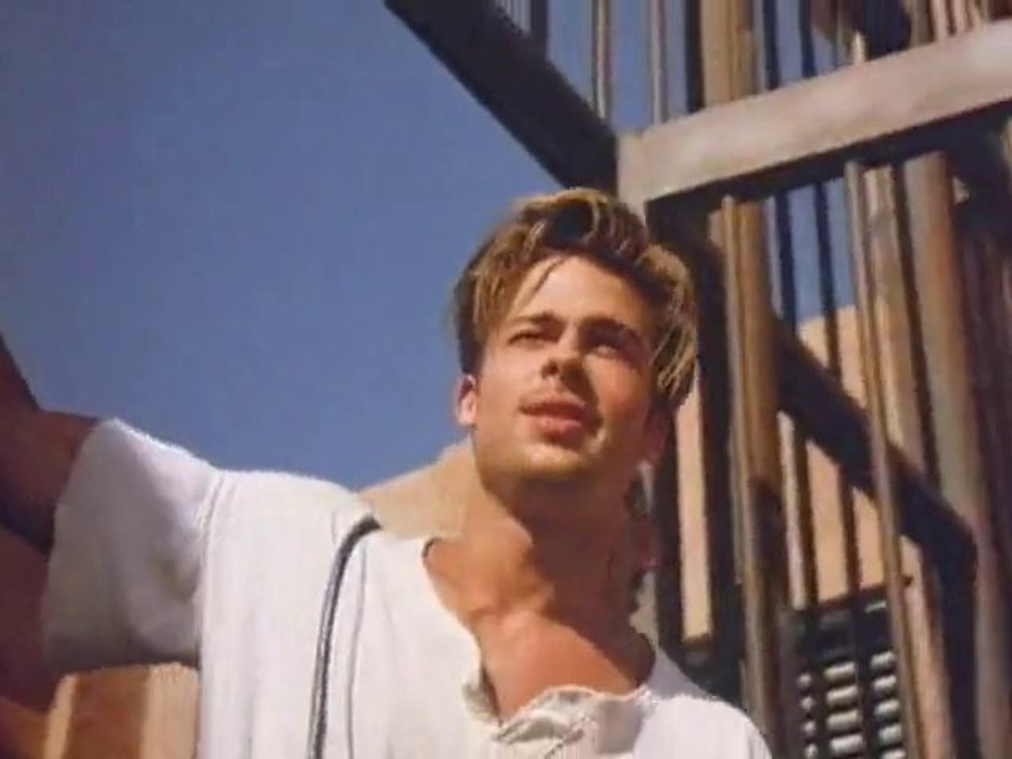 Retrouvez ce film en hd à la maison de la pub : +33 1 46 27 77 70 , contact@lamaisondelapub.comréférence du film : A young brad pitt stands behind .